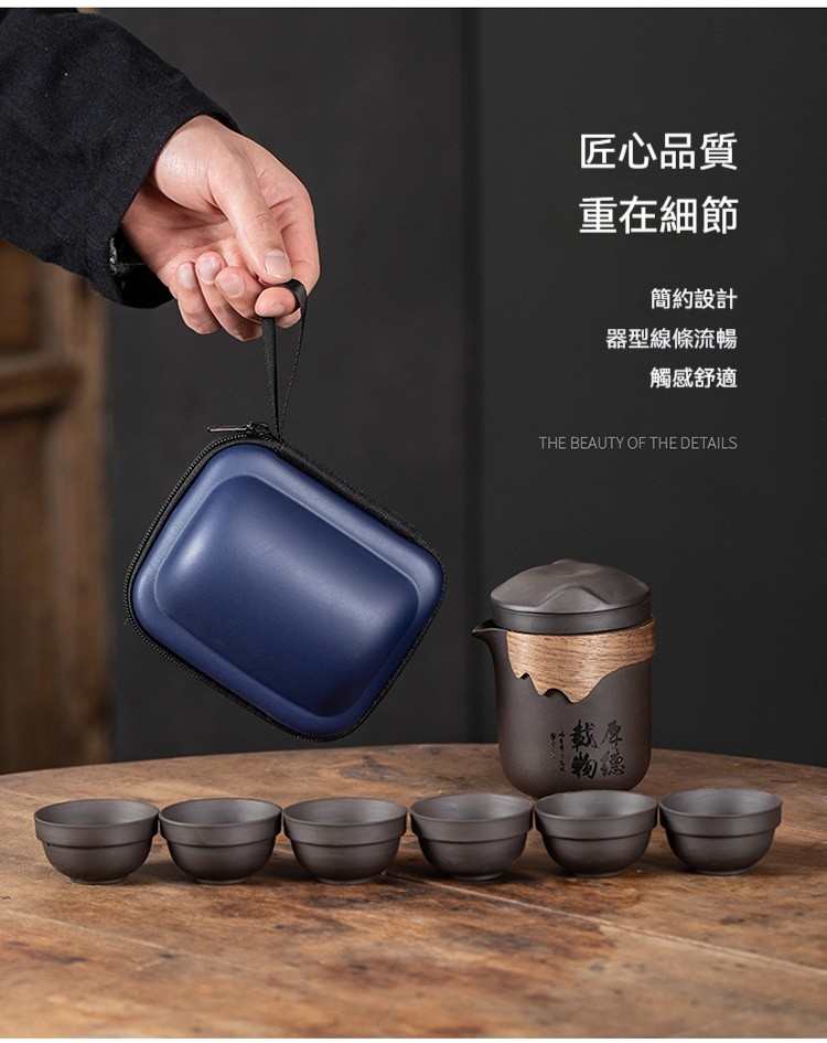 ✅這款「紫韻快客茶具」專為現代茶人設計,將傳統茶道精髓與便攜實用完美融合。✅紫砂壺的溫潤質感、茶水分離的專業設計,一套六杯,滿足獨飲或款待三五好友的需求。✅精巧收納包裝,隨行攜帶不佔空間,讓你在旅途、戶外、家中,都能隨時享受一壺好茶的愜意時光。✅